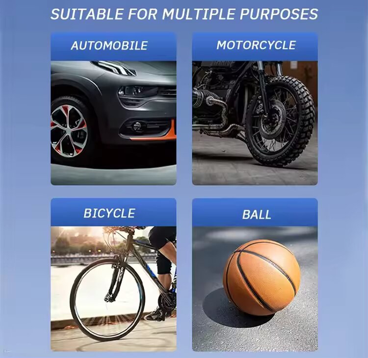 Versatilidad:Incluye accesorios que la hacen compatible con neumáticos de automóviles, motocicletas, bicicletas, equipos deportivos y colchones inflables. 🚲🏀