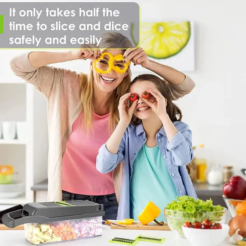 Característica: 🧅 MATERIAL DE GRADO ALIMENTARIO: El picador de verduras para ensalada está hecho de plástico ABS de grado alimenticio y cuchillas afiladas de acero inoxidable para mayor seguridad y durabilidad. 🥒 FÁCIL DE LIMPIAR: limpie rápidamente el cortador de cebolla raspando y enjuagando los residuos de la platina y la cuchilla con las pinzas de limpieza incluidas. 🥔 JUEGO DE COCINA ESENCIAL: El cuchillo de pelar incluye 8 cuchillas intercambiables y otras herramientas para un juego de cocina esencial completo.